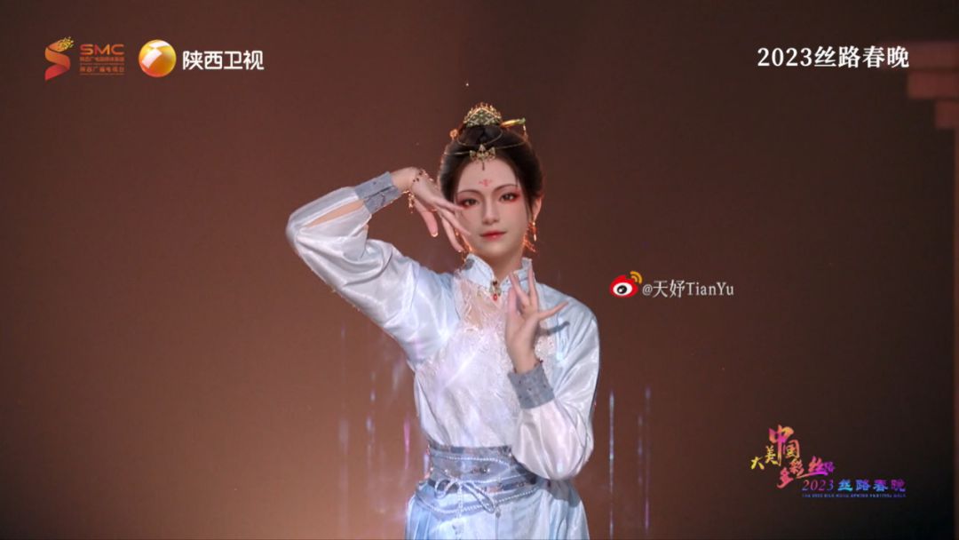 “這青瓷之青,果然國色。”“我將取這抹青而去,重修壁畫!”伴隨著音樂聲漸漸落下,天妤著一襲海天碧色國風(fēng)服飾,手捧耀州青瓷的形象慢慢定格。大年初一晚,天妤亮相“大美中國·多彩
