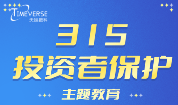 315投資者保護(hù)主題教育為切實做好投資者合法權(quán)益保護(hù)工作,助力資本市場平穩(wěn)健康發(fā)展,在2023年主題為“全面注冊制 改革向未來”的3·15投資者保護(hù)活動來臨之際,天娛數(shù)科特別推