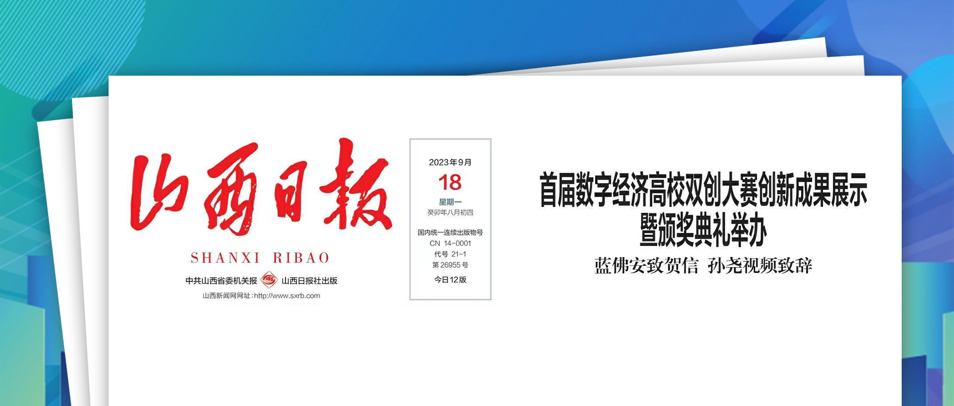 9月18日,《山西日報》頭版發(fā)表文章《首屆數(shù)字經(jīng)濟(jì)高校雙創(chuàng)大賽創(chuàng)新成果展示暨頒獎典禮舉辦》,報道了全國首個圍繞數(shù)字經(jīng)濟(jì)領(lǐng)域,面向高校學(xué)子的雙創(chuàng)大賽,人民網(wǎng)、光明網(wǎng)等多個權(quán)