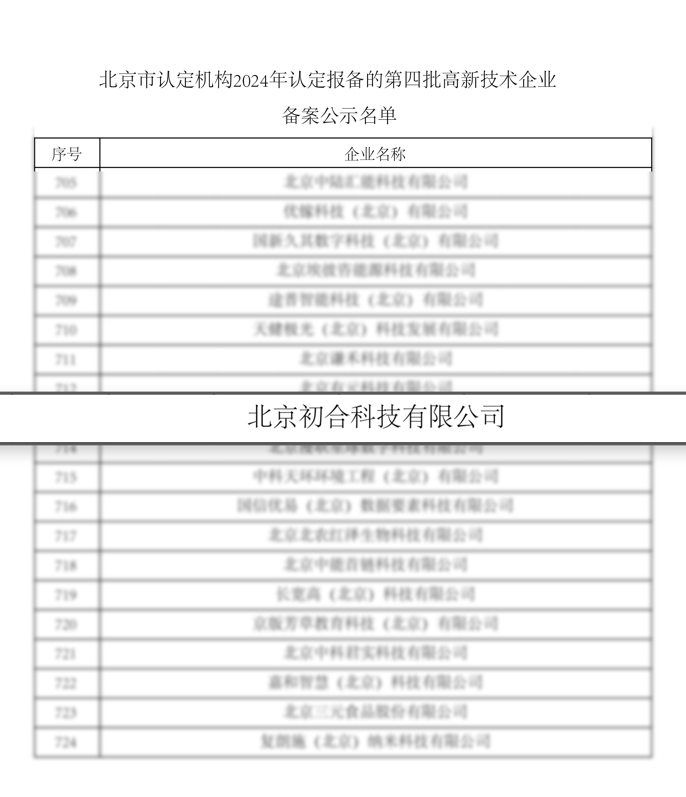 近日,北京市認定機構2024年第四批高新技術企業名單公布,天娛數科AI營銷板塊子公司初合科技成功入選。這是繼2024年10月天娛數科子公司智境云創入選國家高新技術企業后,天娛數科
