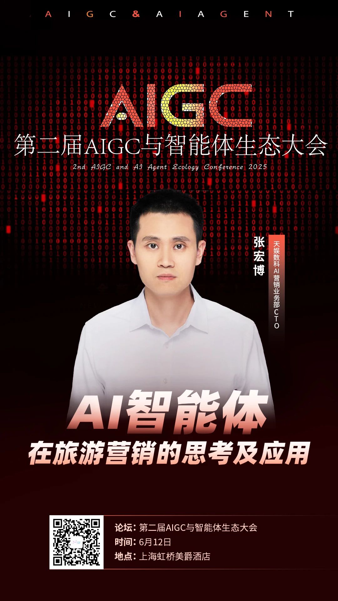 6月12日,備受矚目的第二屆AIGC與智能體生態大會在上海盛大啟幕。天娛數科AI營銷業務部CTO張宏博受邀出席,并發表了題為《AI智能體在旅游營銷的應用與思考》的主題演講,深入分享